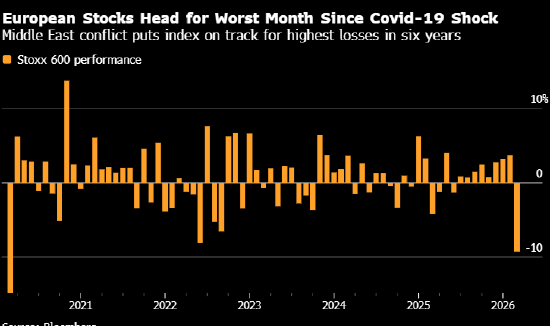 欧洲股市迈向新冠疫情以来最差单月表现 受中东战争影响