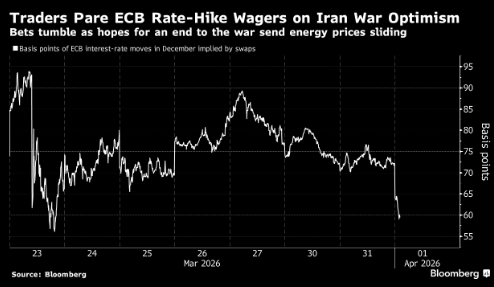 欧洲政府债券收益率也大幅下跌,英国、法国、意大利国债收益率纷纷下跌10个基点或更多,市场减少对今年加息的押注。德国10年期国债收益率下跌6个基点至2.94%,为3月18日以来的最低水平。布伦特原油价格下跌5%至每桶98.65美元。